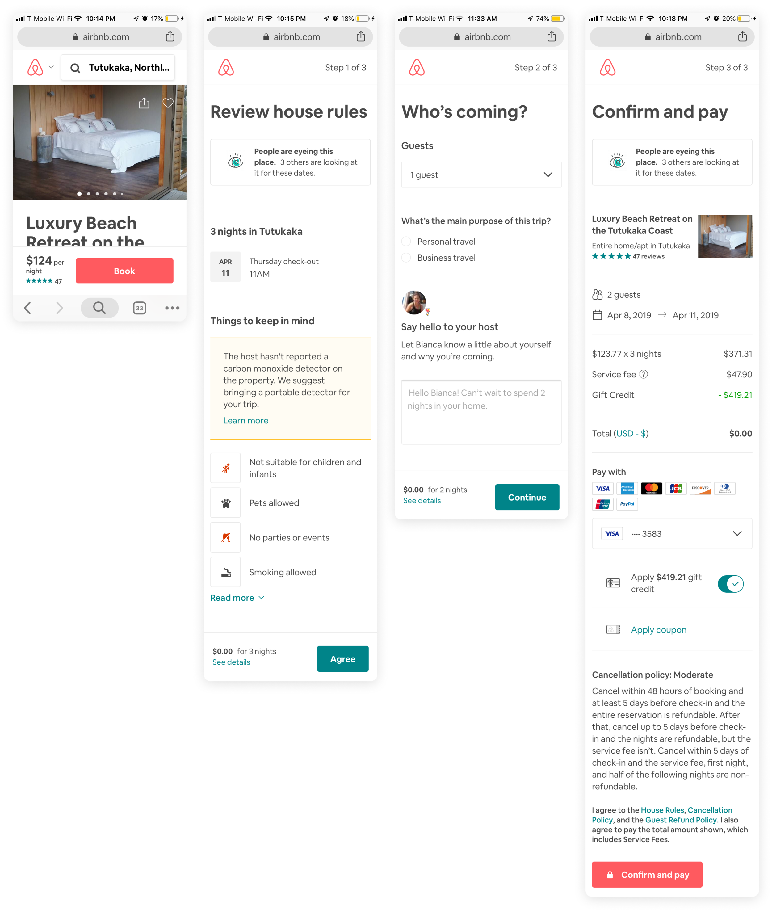New Guests, under most circumstances, only needed to provide a payment method and an introductory message to the host. When no other tasks were necessary, the host message was embedded directly onto the page to make it quickly accessible.